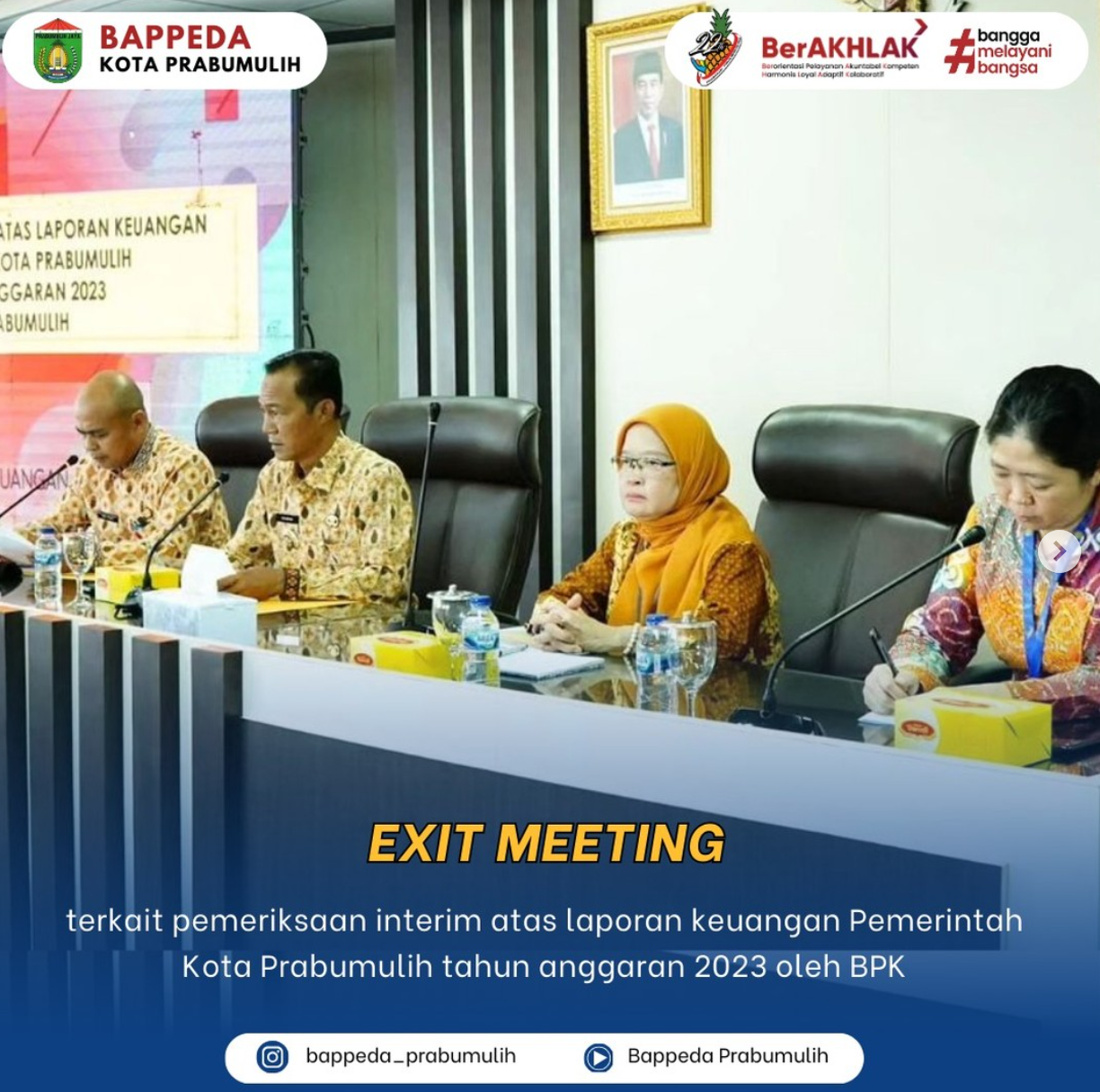 Kamis, 15 Februari 2024 Kepala BAPPEDA Kota Prabumulih, Ir. Abu Sohib, M.Si. menghadiri exit meeting terkait pemeriksaan interim atas laporan