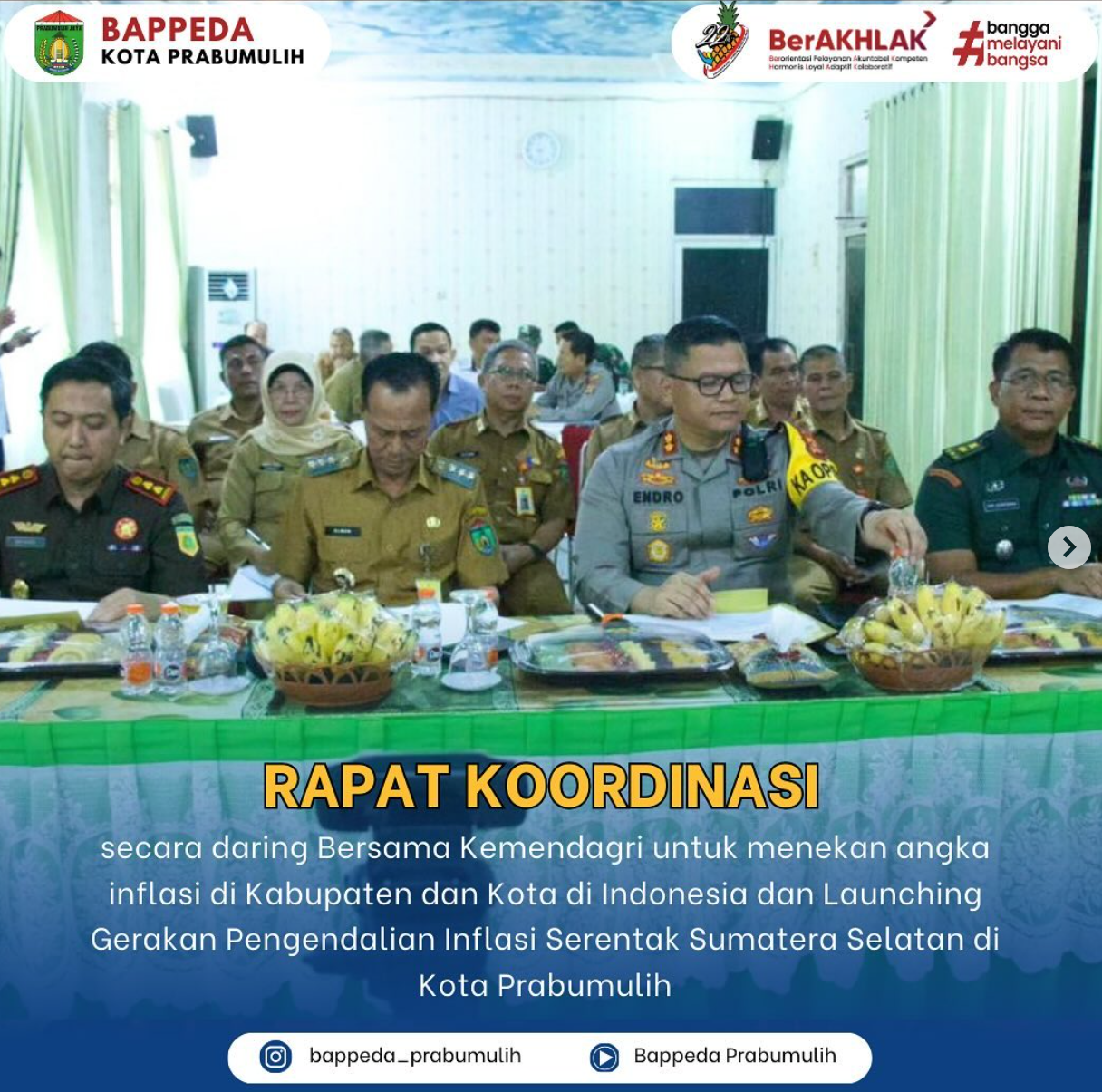 Rapat Pengendalian Inflasi yang dipimpin oleh Penjabat Walikota Prabumulih H. Elman, ST., MM., yang dilaksanakan oleh Kemendagri